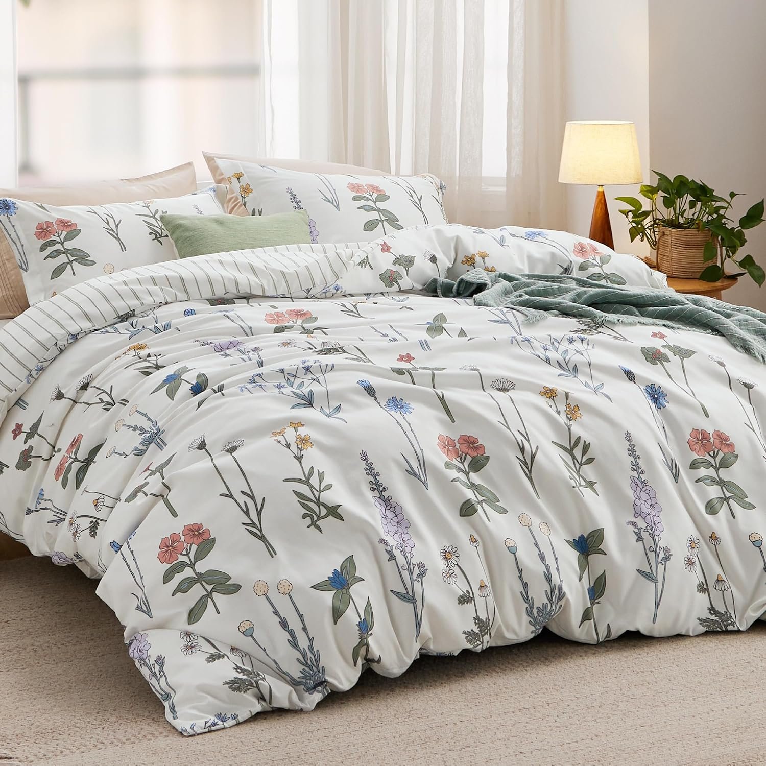 - Modern Design: Featuring a vibrant floral graphic pattern, this floral duvet cover set effortlessly infuses your sleeping space with a refreshing vibe that’ll coordinate with any home space.