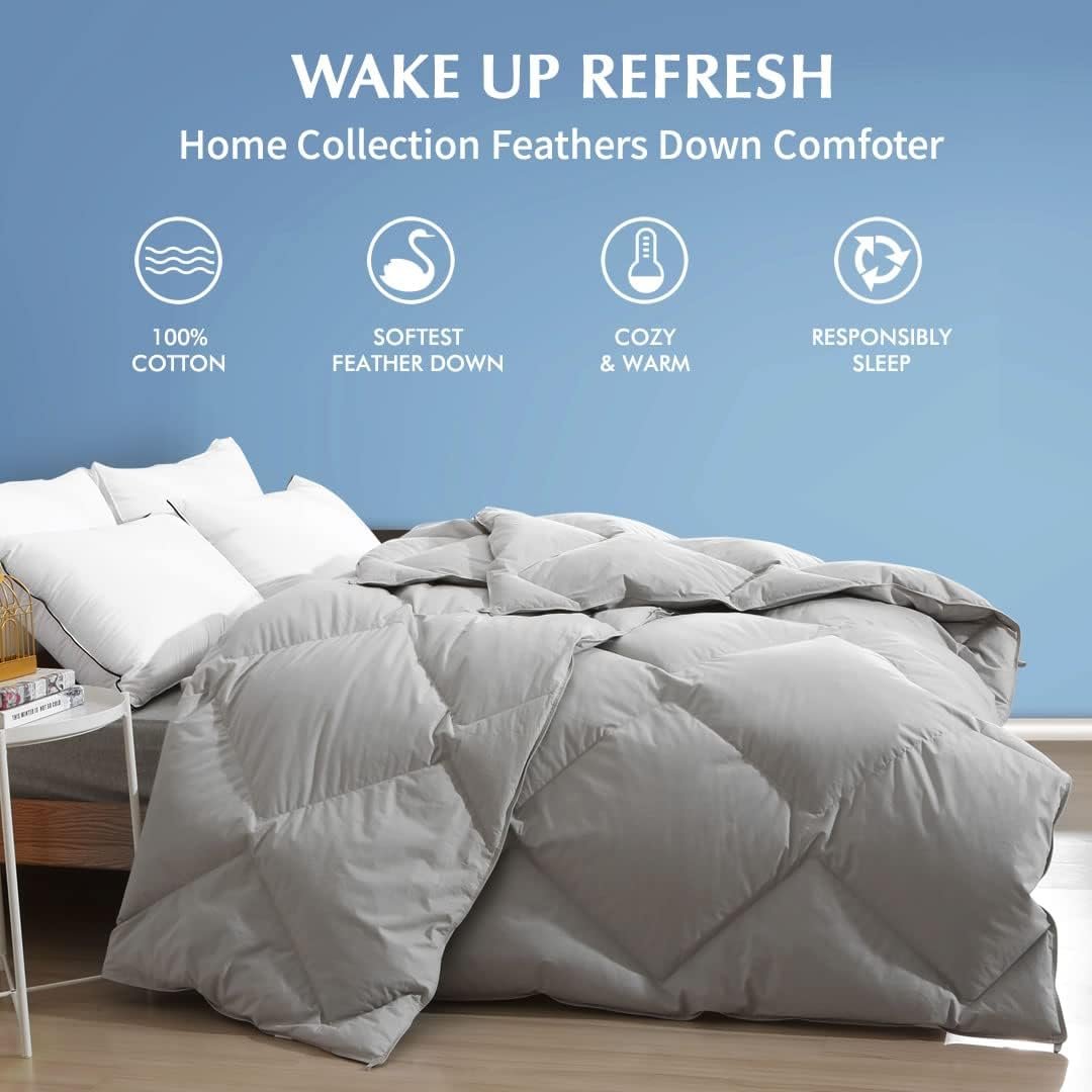 - šPremium Feathers Down Filler — Our feathers down duvet insert is primarily made with the smallest and softest feathers & down, will not feel any feather poking, it is lightweight and always provides fit warmth, and the excellent breathability keeps you comfortable all night. Wake up feeling fresh every morning.