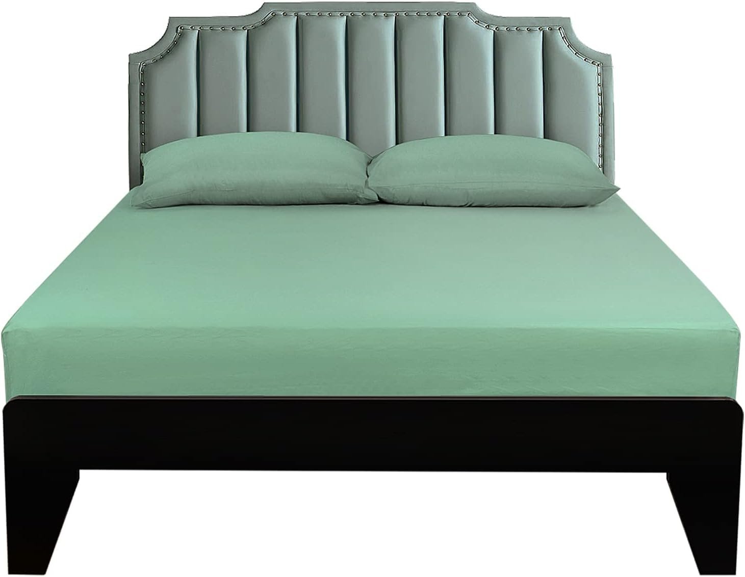 Queen size fitted sheet (cotton), fitted sheet only, 300 thread count, soft and breathable, 8-10 inch deep pocket fitted sheet, suitable for hotels and homes, light green